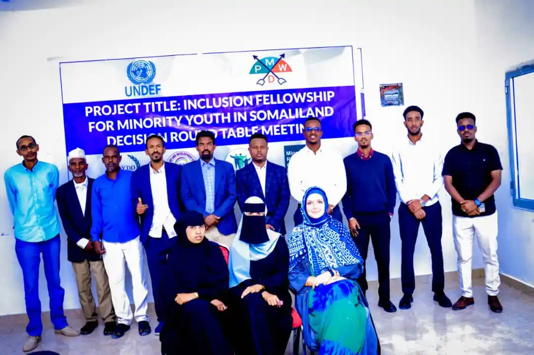 This roundtable is part of the broader project “Inclusion Fellowships for Minority Youth in Somaliland,” implemented by DYDO in partnership with the United Nations Democracy Fund (UNDEF) and Minority Rights Group International (MRG) as the international implementing partner. The initiative places young professionals from minority communities into local government and public institutions, helping to bridge trust gaps, promote diversity, and advance inclusive governance.